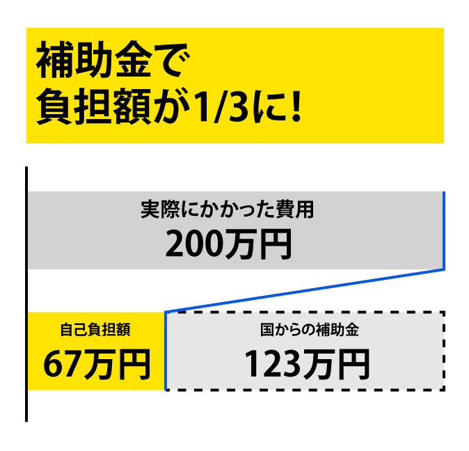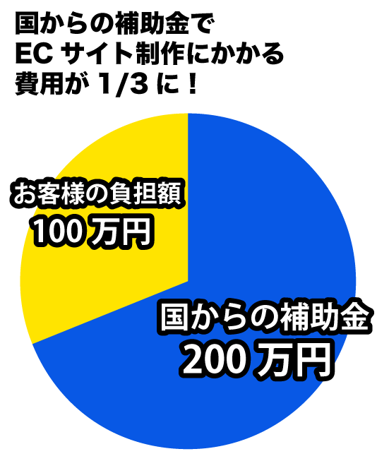 仮に全体でECサイト制作にかかる合計費用が300万円になるとしたら、ECサイト開設費用の2/3を補助金で負担することができます。