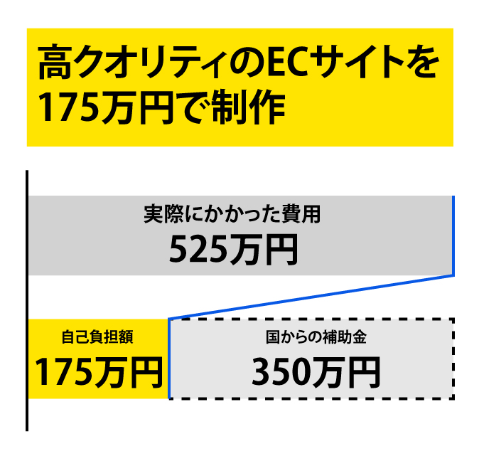 この補助金制度を使うことで、実際には費用の1/3だけでECサイトを開設できます。